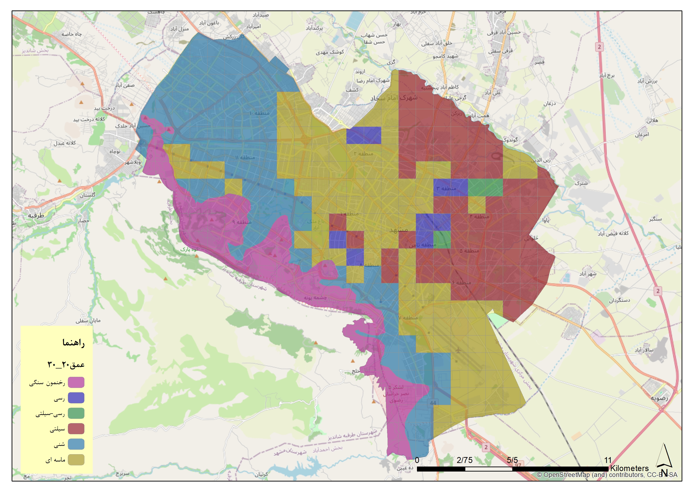 لایه نوع خاک شهر مشهد